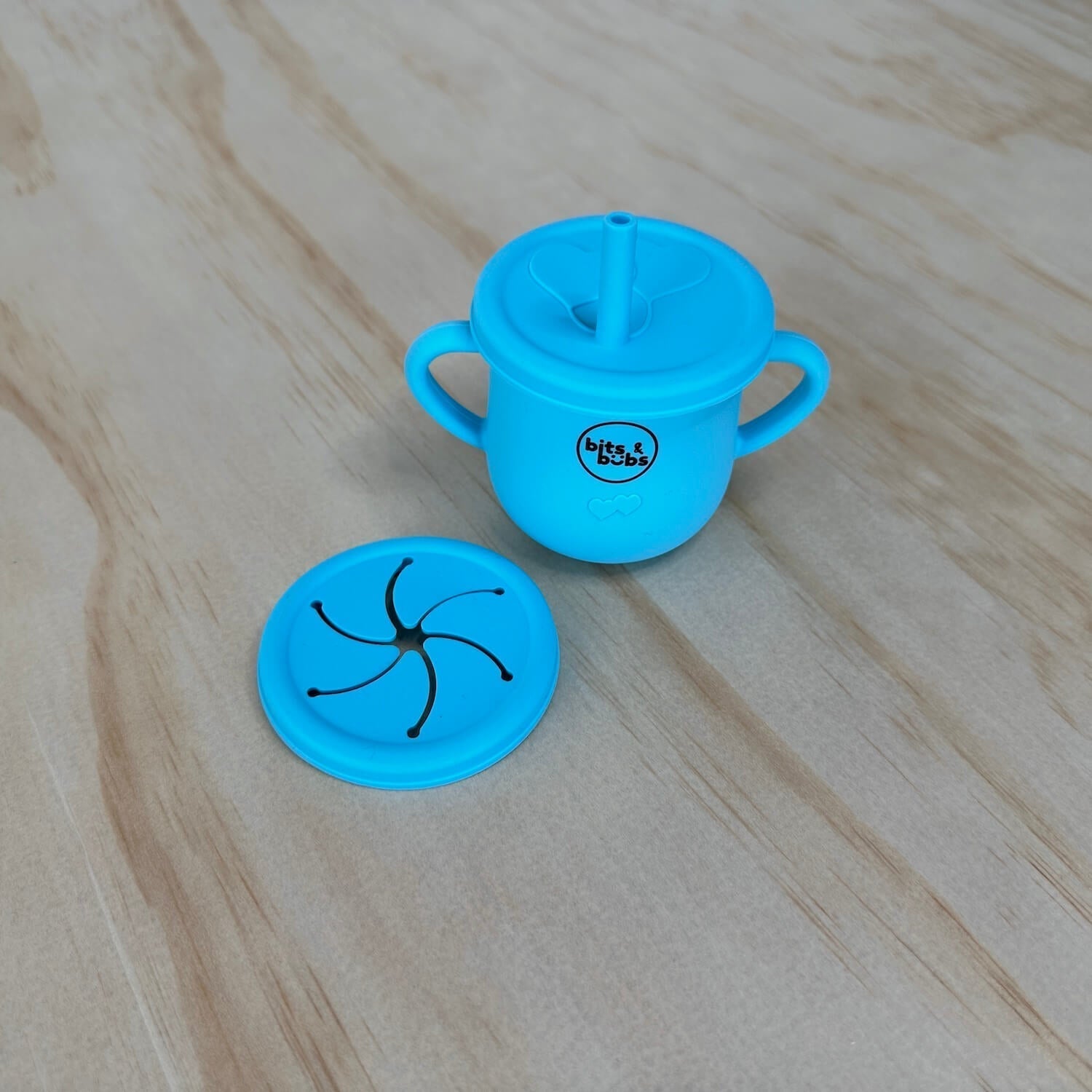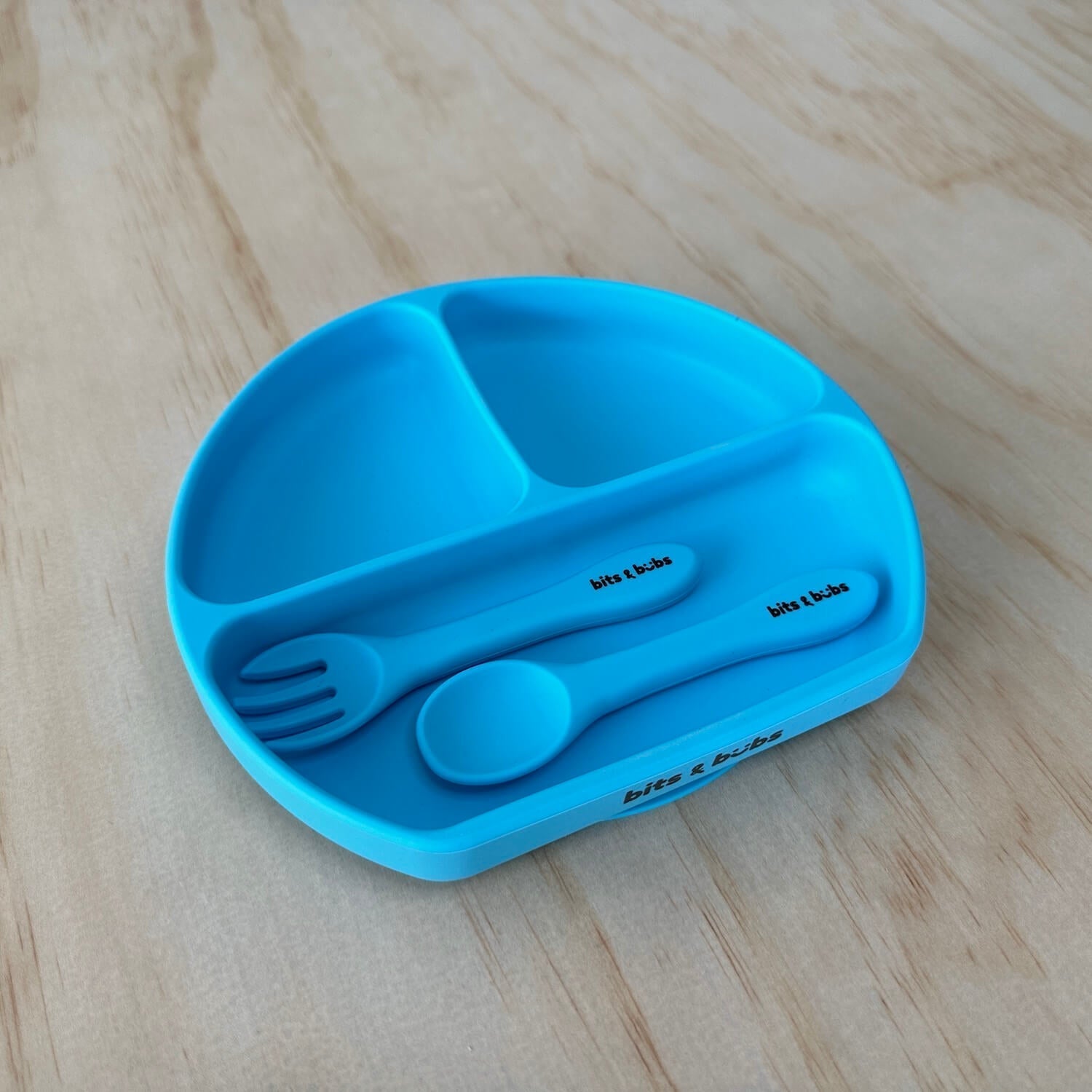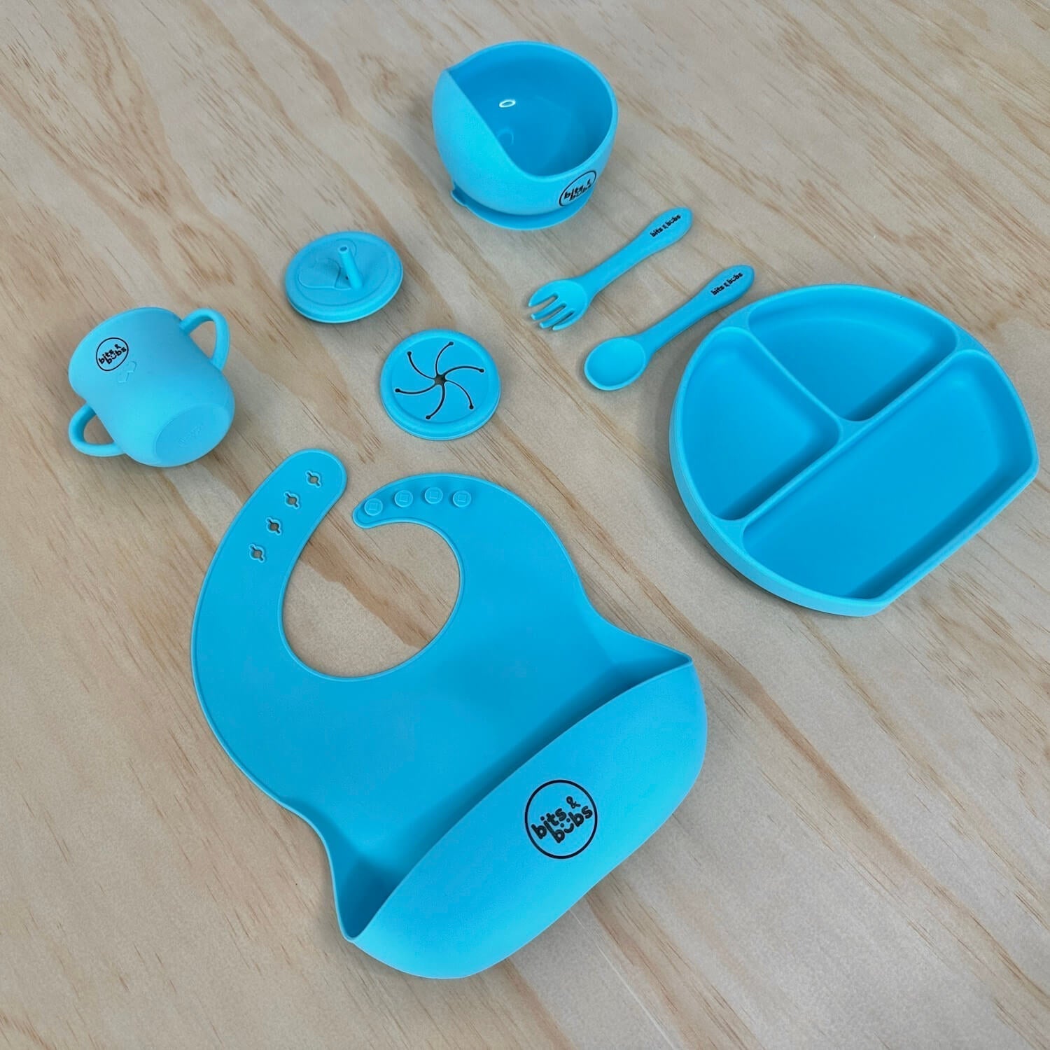Make meal times less messy with our popular silicone feeding set! Each silicone set includes a suction bowl, a suction divider plate, an adjustable bib, a 2 in 1 snack/drinking cup with removable inner straw and a spoon and fork. Perfect as a first birthday present or baby shower gift idea.