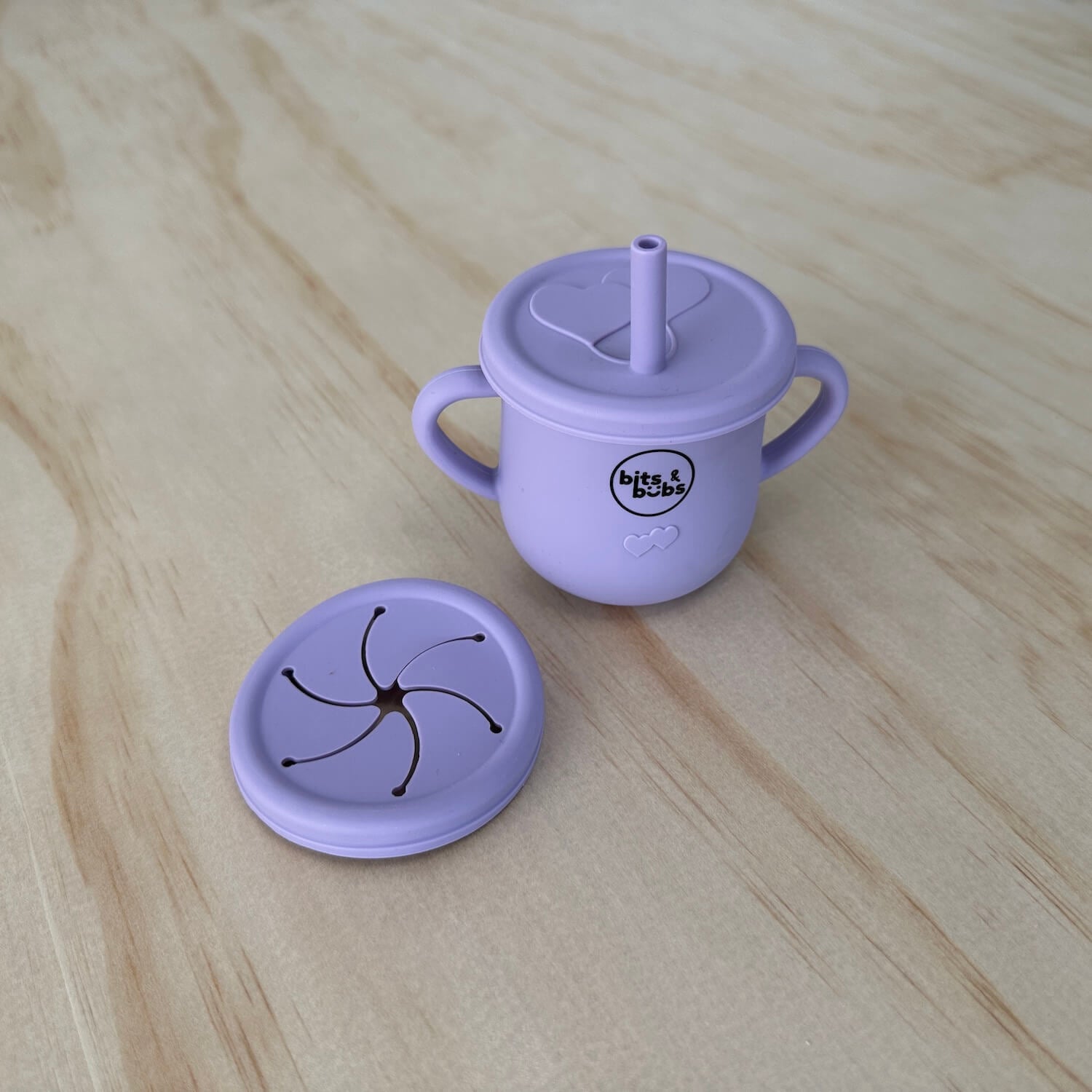 Make meal times less messy with our popular silicone feeding set! Each silicone set includes a suction bowl, a suction divider plate, an adjustable bib, a 2 in 1 snack/drinking cup and a spoon and fork. Perfect as a first birthday present or baby shower gift idea.